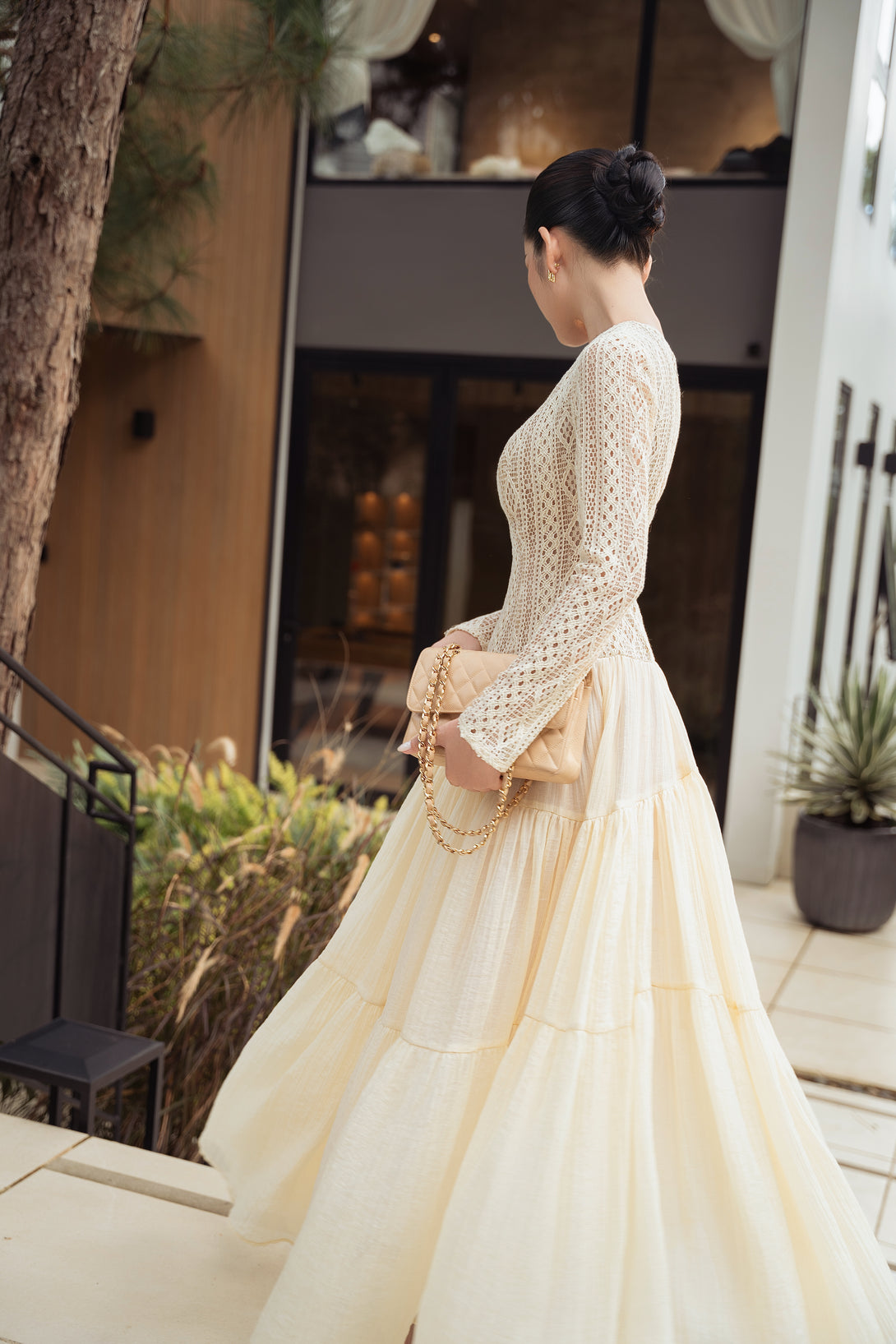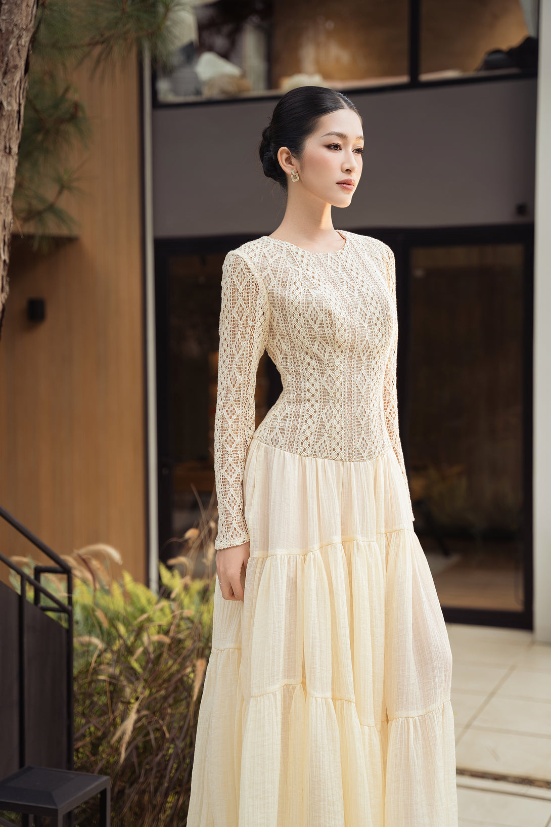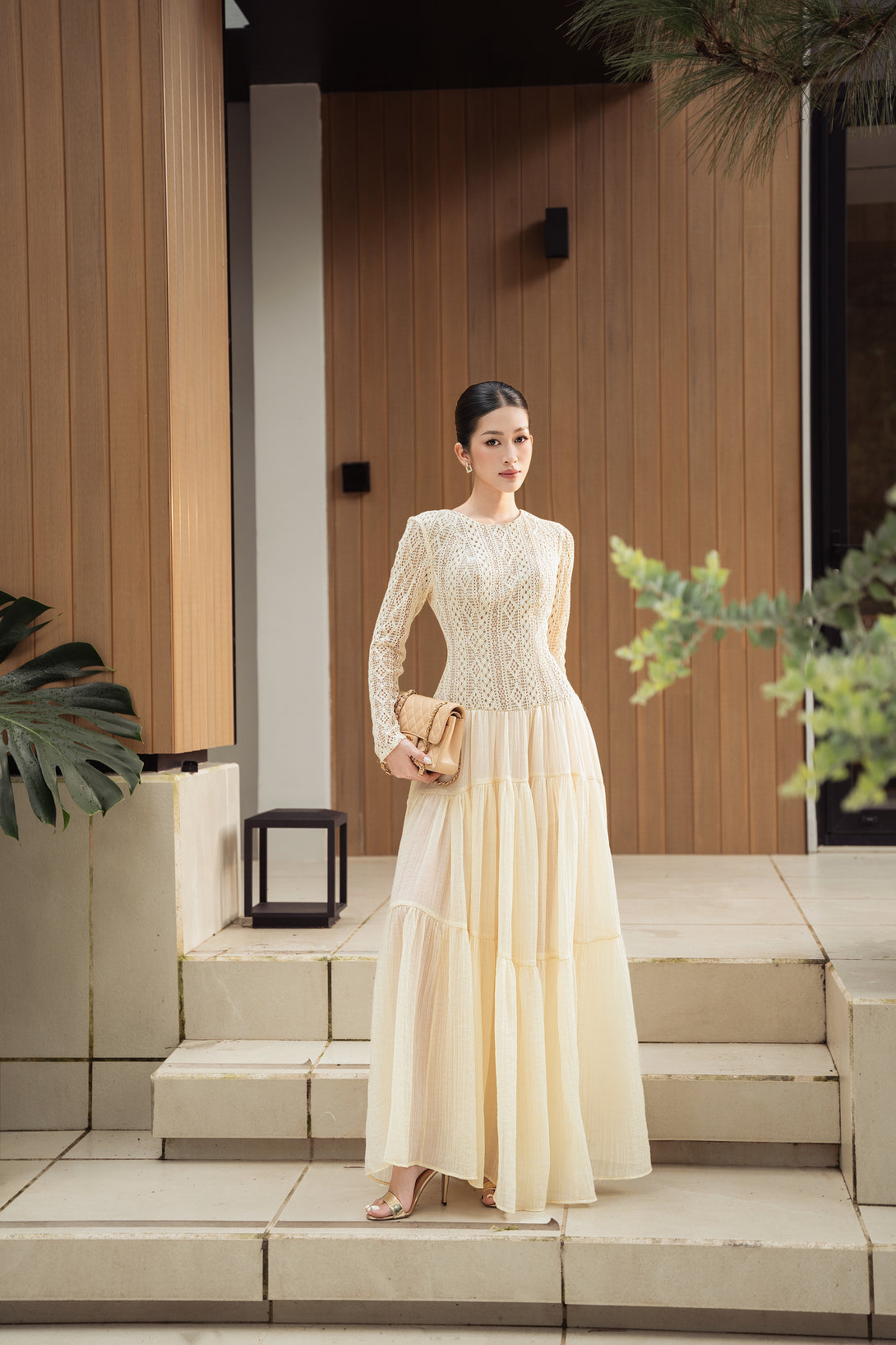 Radiating understated sophistication, this full-length COLE DRESS in a warm, golden hue captures the essence of timeless elegance. The rich amber-gold shade, reminiscent of late afternoon sunlight, drapes gracefully over the silhouette, exuding both warmth and refinement.