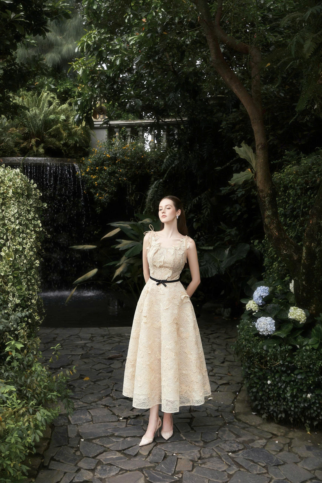 Perfect for garden gatherings, open-air soirées, or romantic afternoons, this dress is designed for women who embody quiet confidence and timeless beauty.