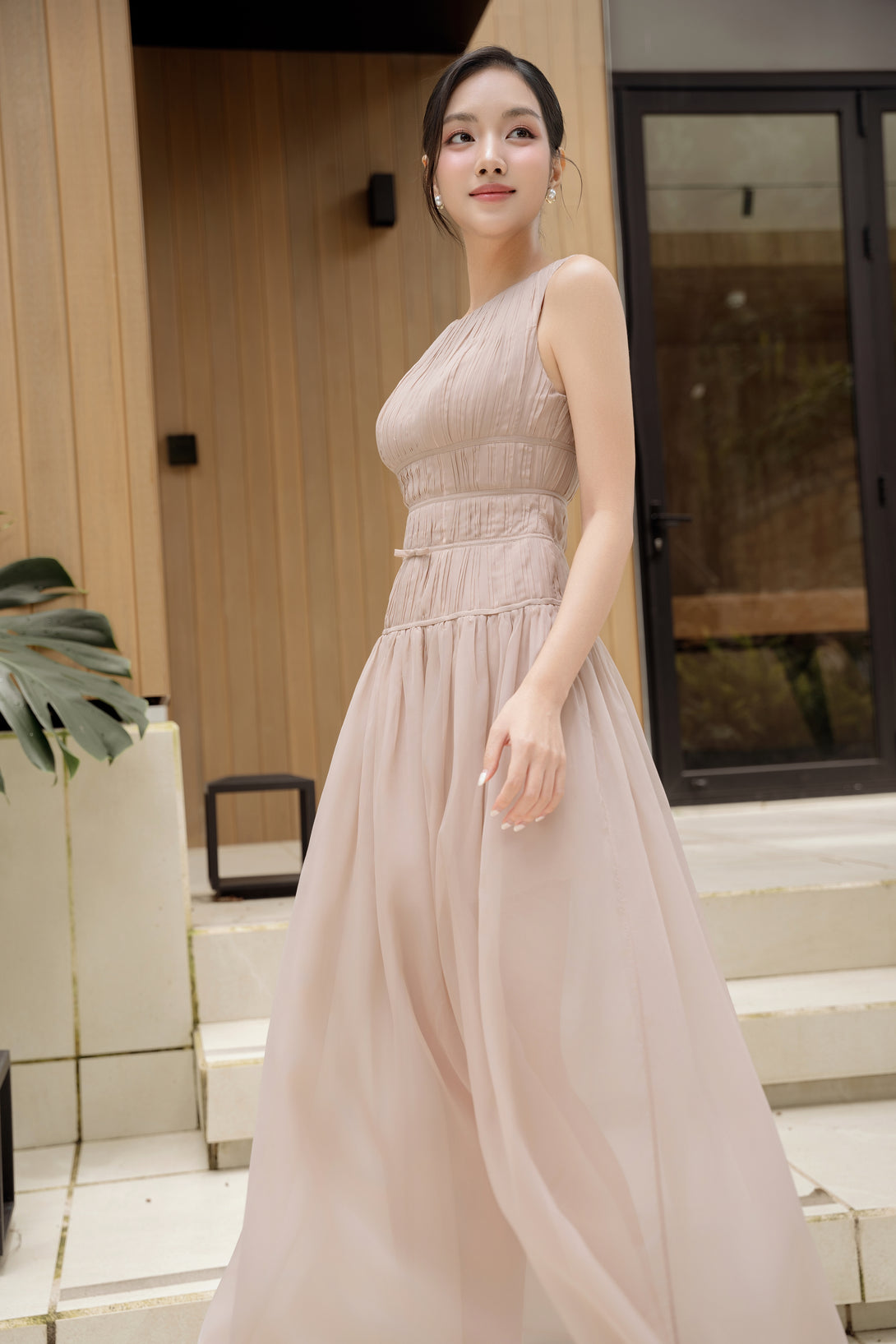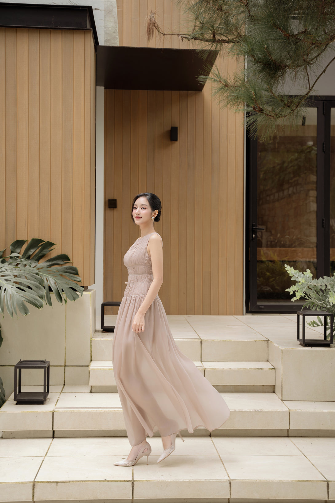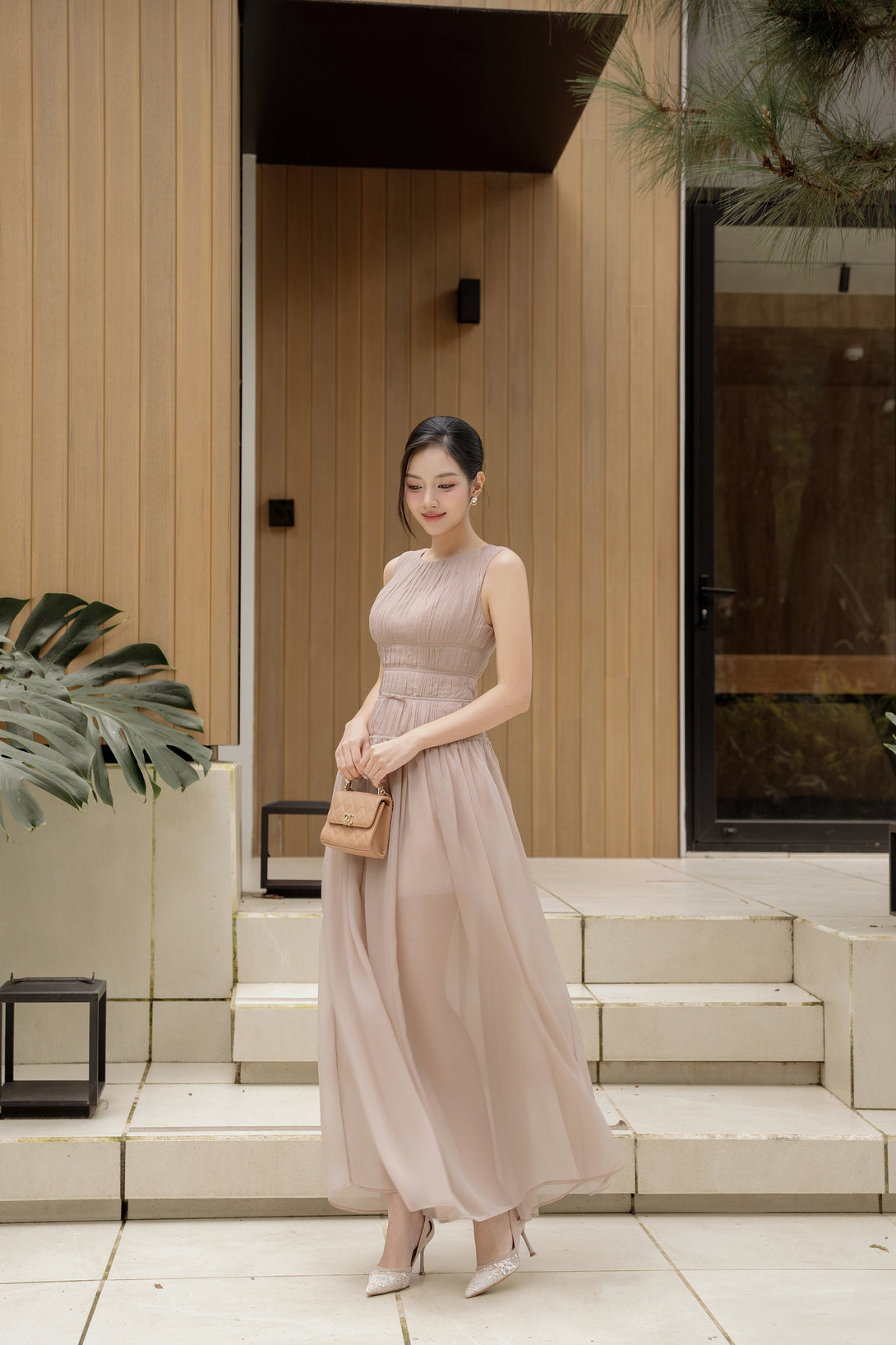 Soft and flowing, this long chiffon dress embodies effortless grace in a warm, earthy brown hue. The lightweight chiffon drapes beautifully, creating a gentle sway with every step, while the elongated silhouette enhances the wearer’s poise and femininity.