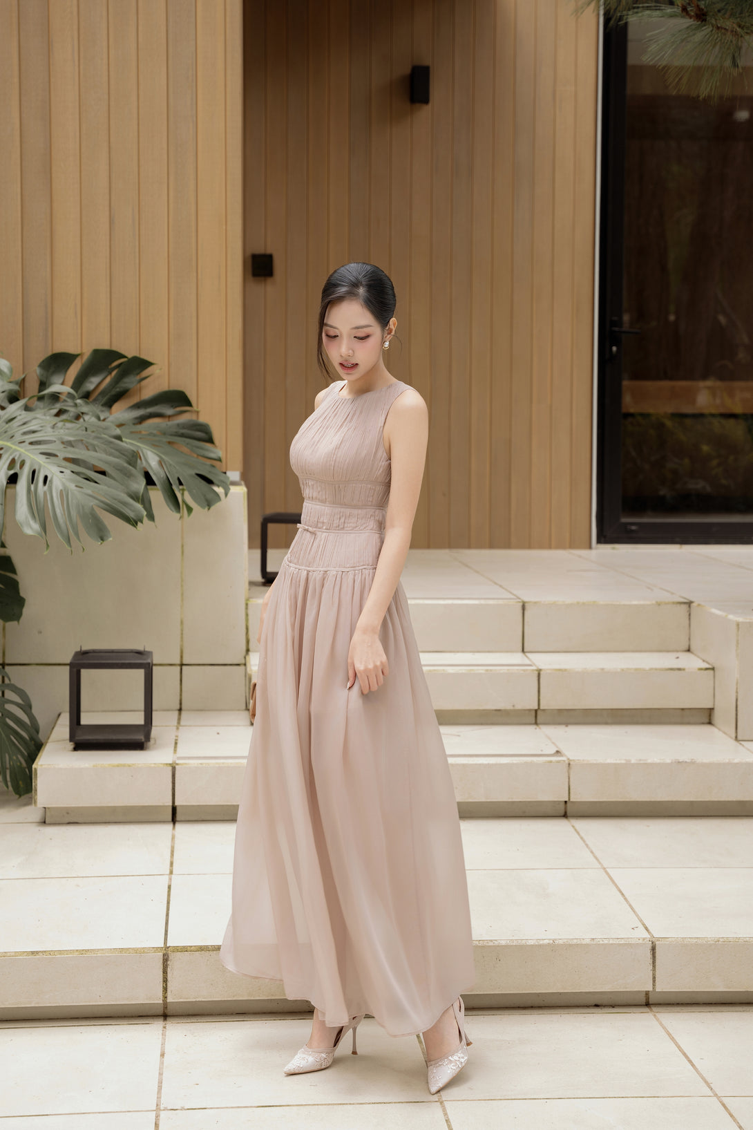 The warm brown tone evokes a sense of comfort and timeless elegance, making it a versatile choice for both daytime gatherings and evening occasions. Crafted with meticulous attention to detail, the dress offers a harmonious blend of sophistication and ease, perfect for the woman who values understated beauty and graceful movement.
