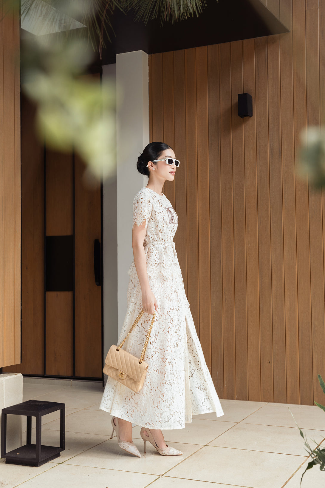 A harmonious blend of casual sophistication and refined charm, MON TOP & SKIRT pairs a premium short-sleeved top adorned with an exclusive logo print with a gracefully long patterned skirt. The top’s high-quality fabric and meticulous printing elevate the design, adding a subtle statement of luxury.